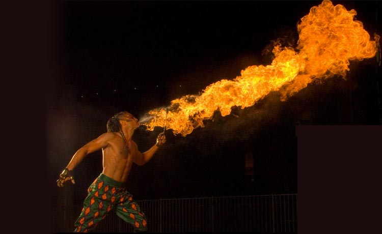 Loin d’être à l’image de ces dantesques représentations que l’on voit à la télévision, le cracheur reste un artiste. Son expertise et son talent sauront faire surgir des colonnes de flammes du néant.