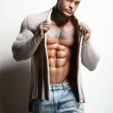 Le gogo danseur d’Auxerre n’est pas né avec cette divine plastique. Il a fallu travailler dur pour en arriver là. Beaucoup de sport ! Notamment, du fitness et de la musculation en salle. Des heures et des heures… Également, du cardio-training pour brûler les graisses. Ce n’est qu’ainsi qu’il a pu de tailler des tablettes de chocolat. Et quels abdominaux sculptés ! Waouh ! Vous ne saurez vous abstenir d’y croquer !