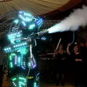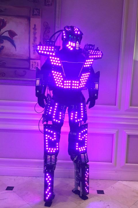 Le but de la performance conduite par Brice est de conférer un caractère différent et exceptionnel à la soirée. L’originalité est poussée à son paroxysme par le spectacle sons et lumières. Pour s’assurer d’une soirée haute en couleur, rien de mieux qu’un Robot LED !